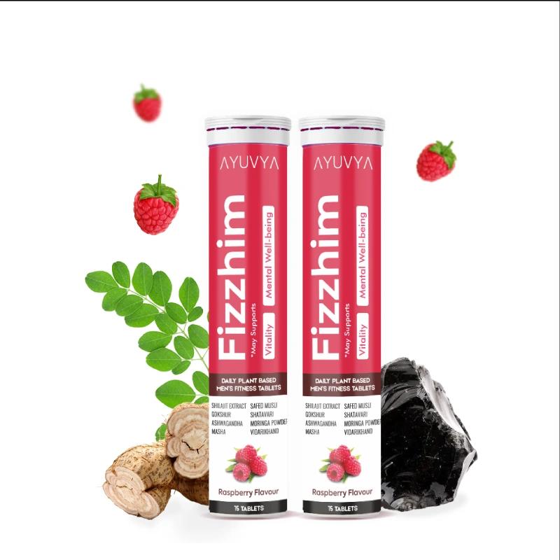 Ayuvya Fizzhim is a diet supplement for men that they can take to boost their endurance, strength, vitality, and overall health. All common ingredients, including saved musli, Vidarikand, Ashwagandha, Shilajit, and Moringa, are used to make Fizzhim.