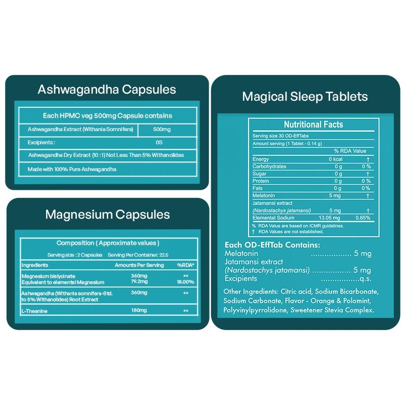 SLEEP & STRESS RELIEF KIT | Magical Sleep Tablets + Ashwagandha Capsules + Magnesium Capsules